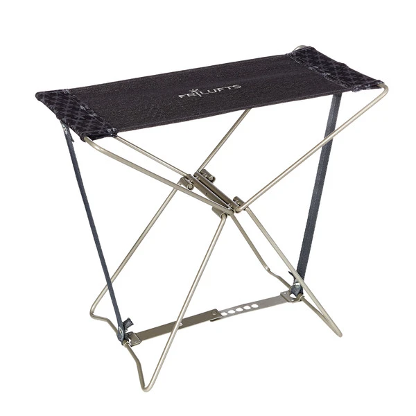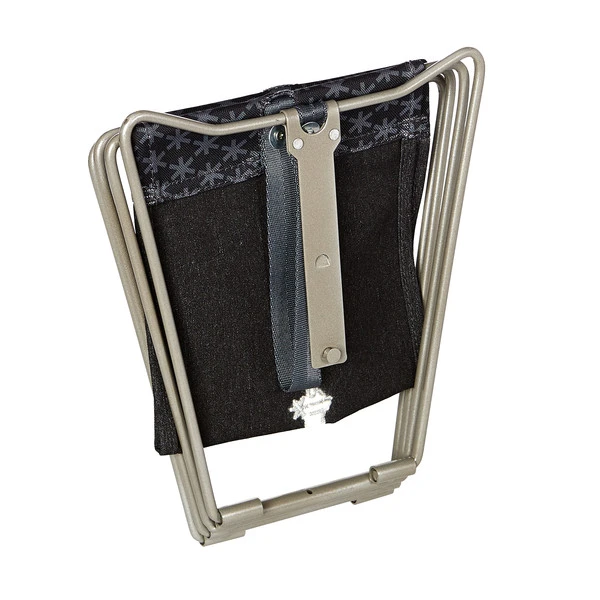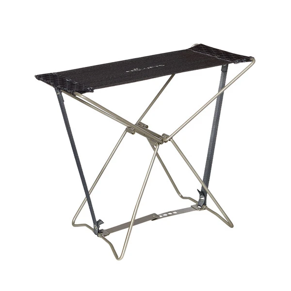 Die ungewöhnliche Konstruktion des Falthockers ist sehr stabil und erlaubt ein flaches Packmaß, trotz der Sitzhöhe von 34 cm. Optimal für Reisen, bei denen kleines Gepäck eine Rolle spielt.