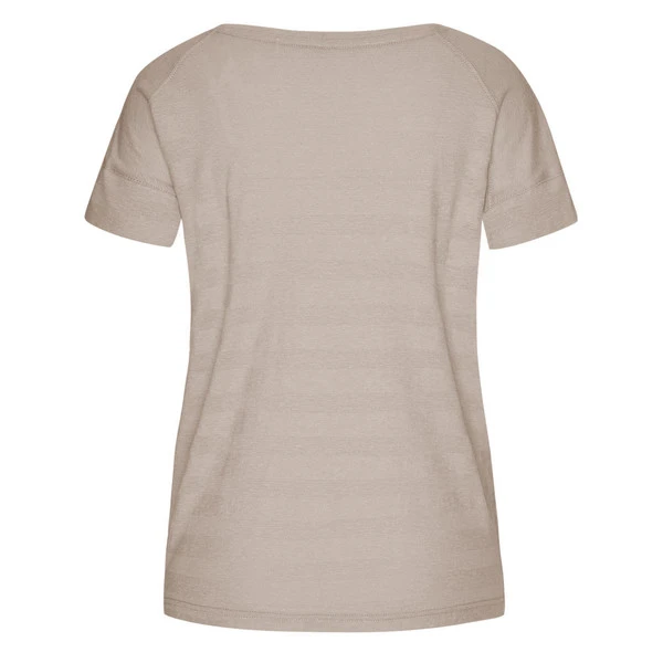 Ein lockerer, luftiger Schnitt, ein weiches, nachhaltiges Materialgemisch und eine schöne Optik: Dieses T-Shirt trägt sich äußerst angenehm, ob auf Reisen in ferne Länder oder im Alltag in der Stadt.