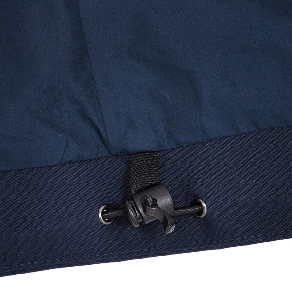 Das robuste Außenmaterial hat einen kräftigen, aber dennoch angenehm weichen Griff. Dadurch fühlt sich die Jacke eher wie eine komfortable Übergangsjacke an als eine Regenjacke. Und dennoch: Das Material ist dank seiner PU-Beschichtung zuverlässig wind- und wasserdicht. Die PFC-freie Imprägnierung verhindert währenddessen, dass Nässe überhaupt erst in das Material eindringen kann.