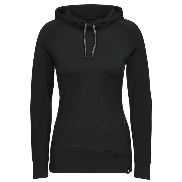 Durch seine Materialmischung mit hohem Tencel- und Wollanteil hat der Kapuzenpullover einen besonders weichen Griff und einen schönen, fließenden Fall. Das Material leitet entstehende Feuchtigkeit schnell von der Haut weg nach außen. Dadurch sorgt der Pullover auch beim aktiven Einsatz für hohen Tragekomfort.