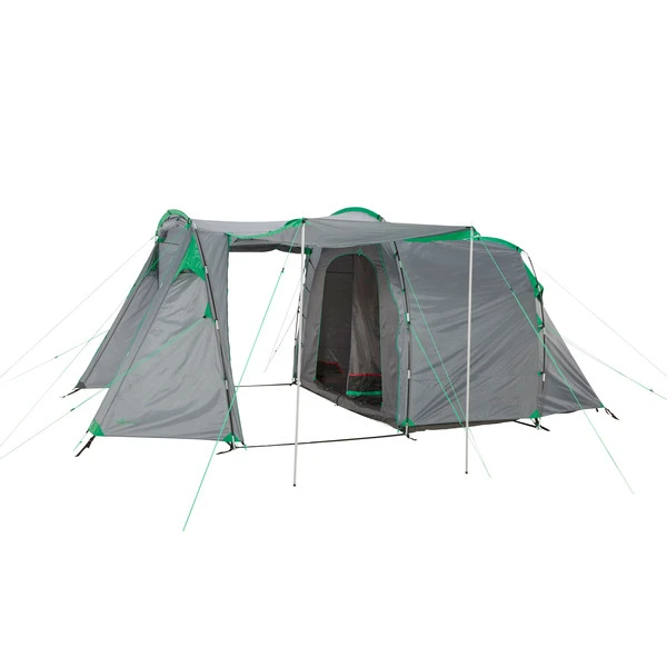 Das preiswerte Familienzelt lässt sich durch markierte Stangen und Gestängekanäle problemlos aufbauen. Trotz der Größe gelingt der Aufbau mit zwei Personen schnell. Das Innenzelt kann beim Aufbau im Außenzelt verbleiben. So wird es auch bei Regen nicht nass.