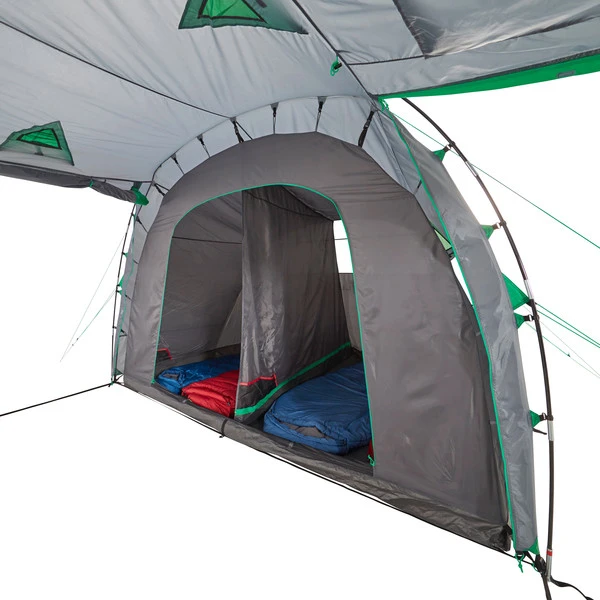 Das Innenzelt bietet ein großes Raumangebot für vier Personen und verfügt über insgesamt vier Netzseitentaschen in denen Brillen, Bücher, Lampe und andere Kleinigkeiten ihren Platz finden. Eine Stoffbahn separiert das Innenzelt, wodurch zwei mal zwei Schlafplätze entstehen. Der Stoff kann bei Nichtgebrauch nach oben gerollt und fixiert werden. Ein großer Lüfter mit Moskitonetz sorgt für ausreichend Belüftung im Innenzelt.