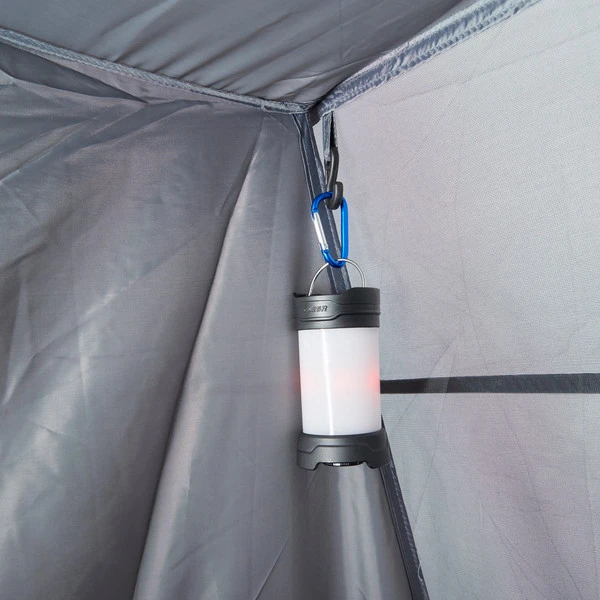 Werden beide Innenzelte ausgehängt, kann das verbleibende Überzelt als Zelt für z.B. Gartenpartys dienen. Vier Eingänge, die teilweise auch hochgestellt werden können, bieten nicht nur eine gute Aussicht, sondern mit den acht weiteren Lüftern auch eine optimale Raumbelüftung. Die Fenster stellen jedoch auch bei geschlossenen Eingängen eine gute Sicht nach draußen bereit.